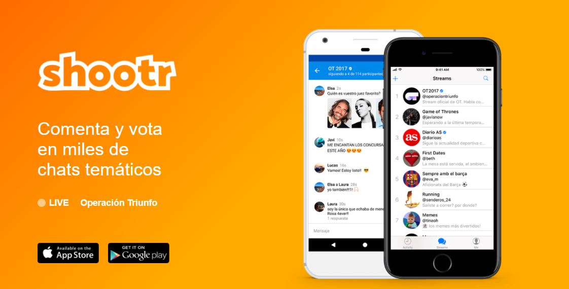 APPS: Shootr el octubre 09, 2018 Obtener enlace Facebook X Pinterest Correo electrónico Otras aplicaciones Shootr Comenta programes de TV, el futbol, sèries, aficions i esdeveniments o participa en les enquestes més divertides en els xats temàtics de Shootr. Comentarios